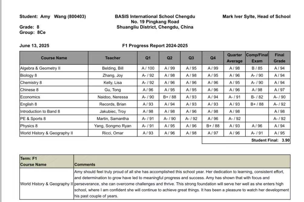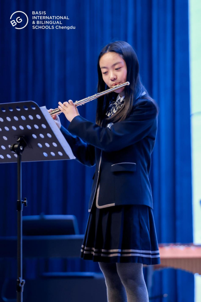 I have been playing flute from second grade. I was attracted by this beautiful silver instrument, so I pleased my mum to agree sending me to the school’s orchestra. I made a plan for myself for practising flute from grade two to grade five, I would practise flute for half an hour to one hour each day, because I don’t have so much academic stress at that time. In grade six, I joined a more professional orchestra named Sichuan Youth Philharmonic Orchestra. In addition, in sixth grade, I did not have enough time for practising flute, so my plan changed into one hour per three days. My orchestra won many awards and played many beautiful music pieces, so I enjoyed my orchestra very much. Also, I have been participating in BASIS’s orchestra and elective music class, and I played many music pieces in the Awarding Ceremonies and activities